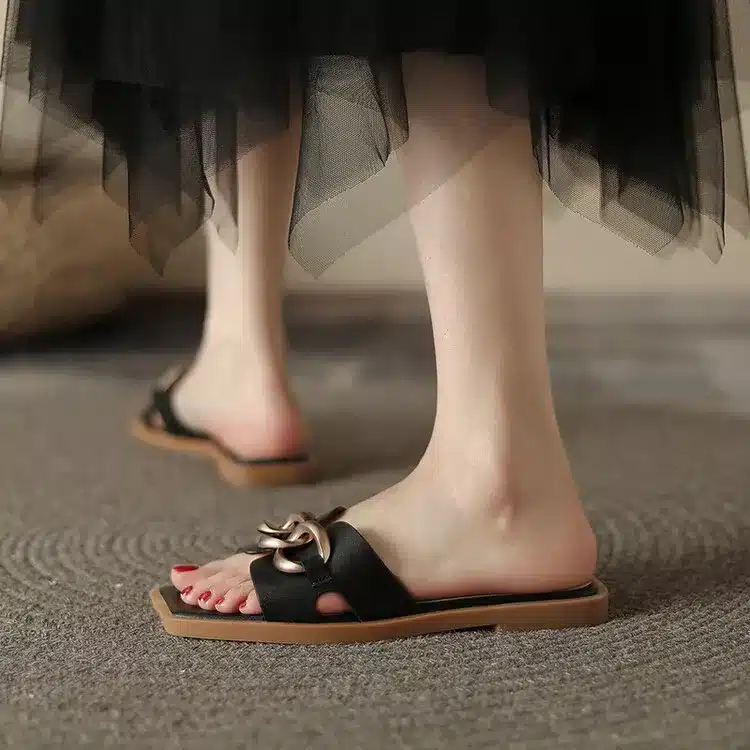 Step into the sun-soaked season with style and comfort in our latest collection of Summer Square Toe Leather Slippers for Women. Designed to blend modern aesthetics with timeless comfort, these sandals are a testament to handcrafted precision and refined taste. Whether you’re stepping out for a casual day in the city or heading to a chic outdoor soirée, these slippers will be your go-to footwear for every summer occasion.